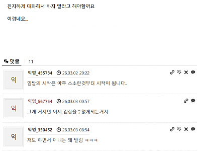 호주 워홀녀.....유튜브 댓글 대참사 매거진 유머 2025.09.01 10:34 Short 조회수 2845 × 아래 내용 확인하고 계속 읽어 보세요! 5 원하지 않을 경우 뒤로가기를 눌러주세요. 로그인한 회원만 댓글 등록이 가능합니다.