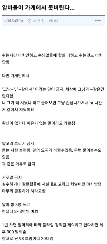 한달에 알바가 2~3명씩 나가서 고민이라는 20대 사장