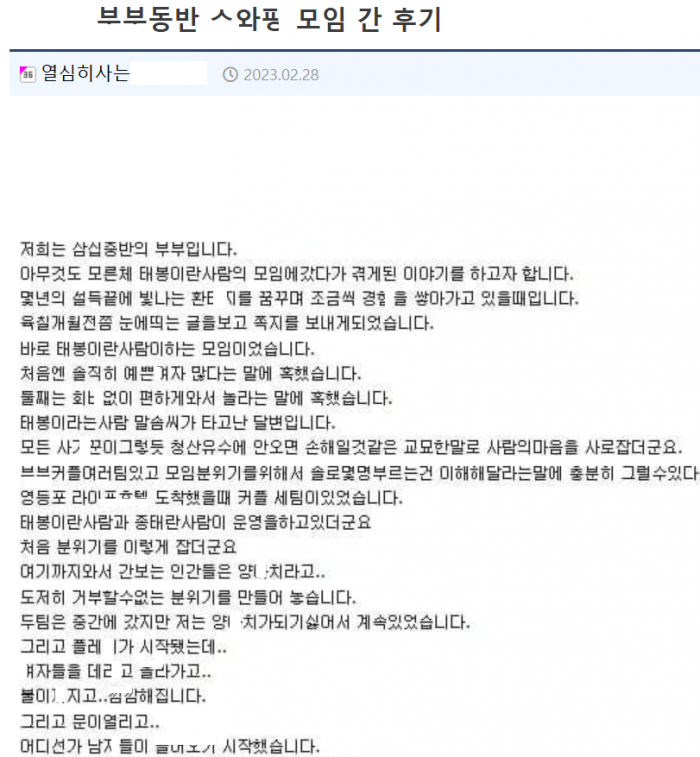 부ㅂ동반 스ㅇㅍ 모임 갔다가 생긴 일