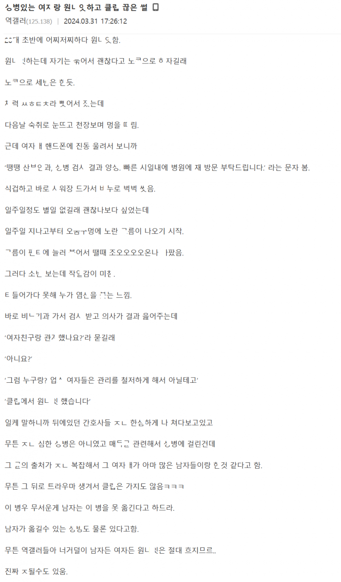 ㅅ병 있는 여ㅈ..r와 노ㅋ으로 원ㄴ잇하고 클ㄹ 끊은 썰
