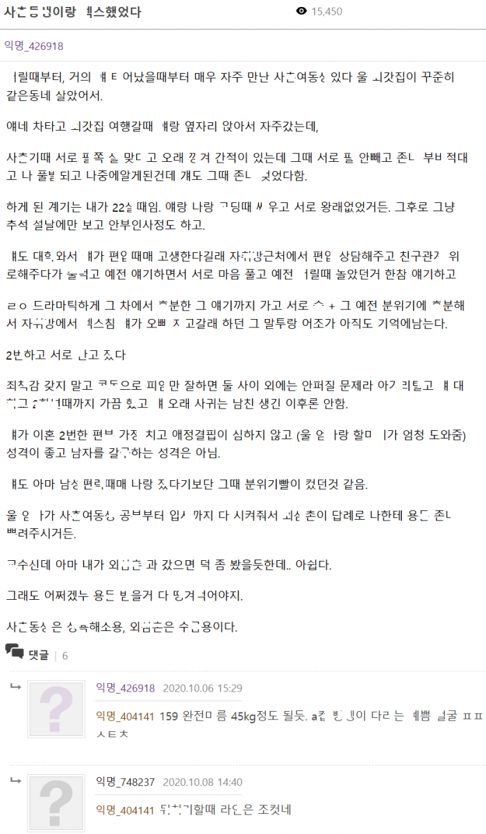 ㅅㅇㅎh소 한다고 사ㅊ여ㄷㅅ이랑 ㅅㅅ 했었던 이야기