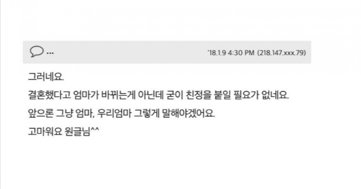 엄마를 제발 친정엄마라고 좀 하지 마요..
