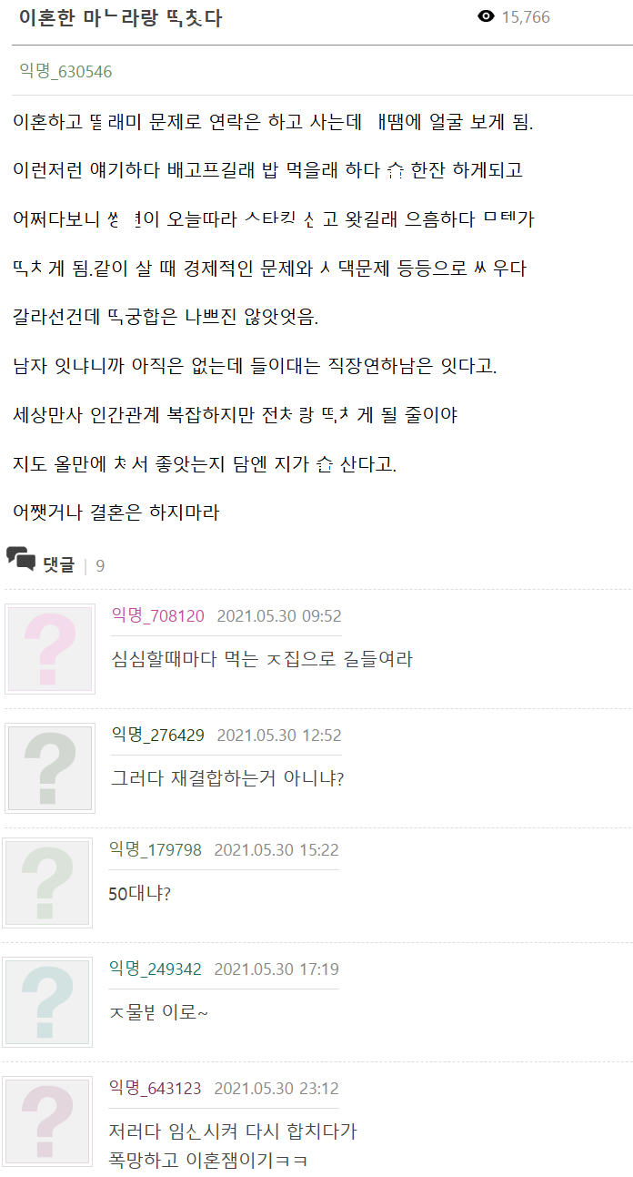 스ㅌㅋ 신고 온거 보고 ㄲ려서 이혼한 마ㄴ라랑 ㄸ쳤다