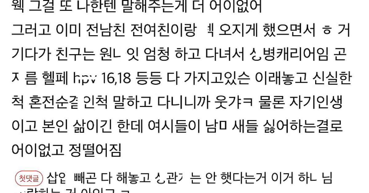 노ㅅㅅ 혼전순ㄱ 하는척하던 여친이 온갖 ㅅ병에 걸려 있었네요