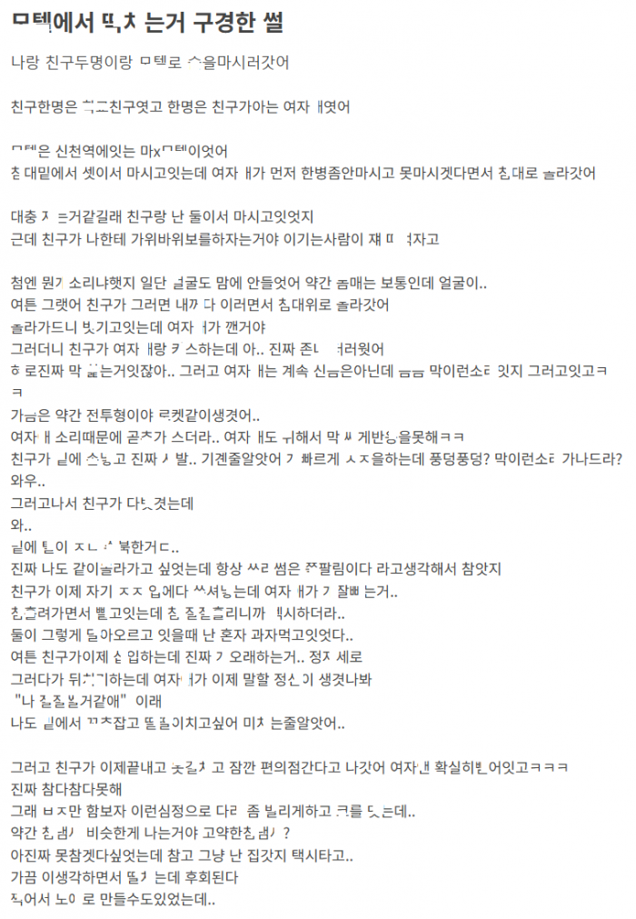 친구랑 모ㅌ 갔다가 친구가 ㅂㅈ에 ㅂ는거 구경한 썰