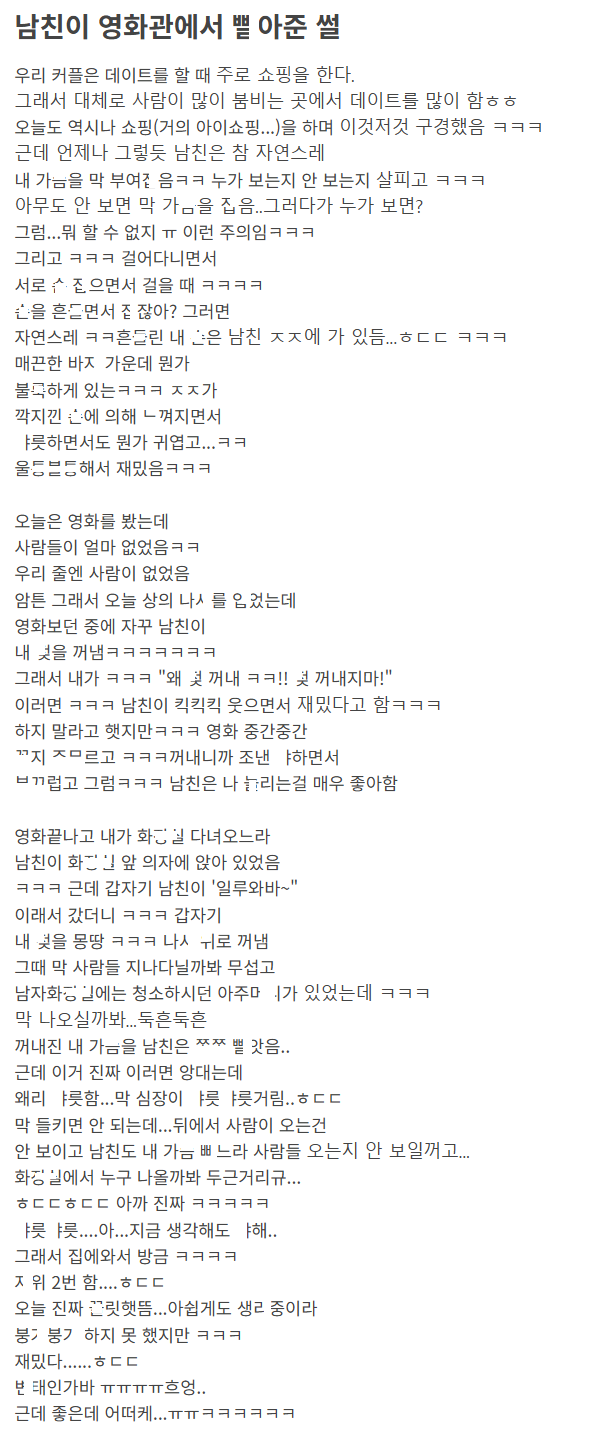 남친이 영화관에서 ㅂㅈ 흡ㅇ한 이야기