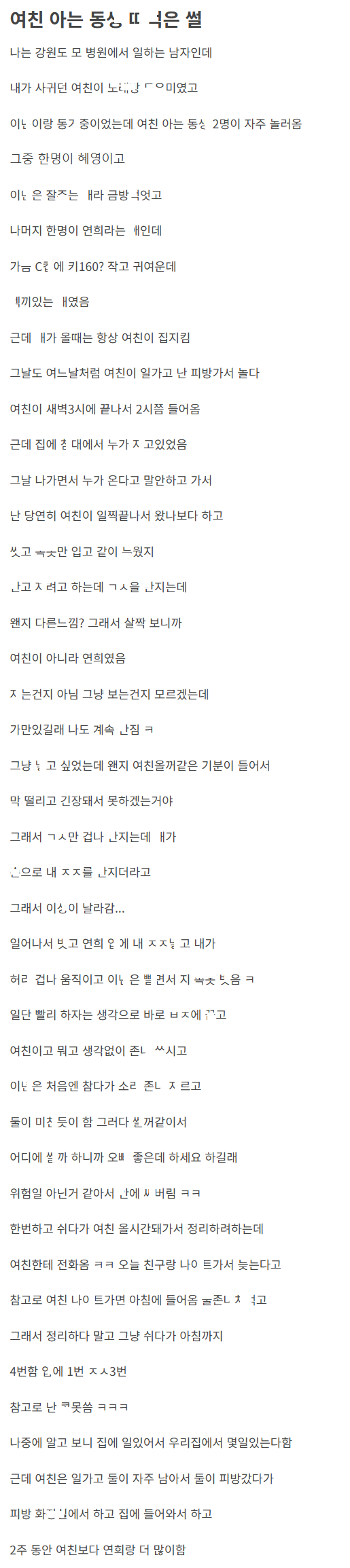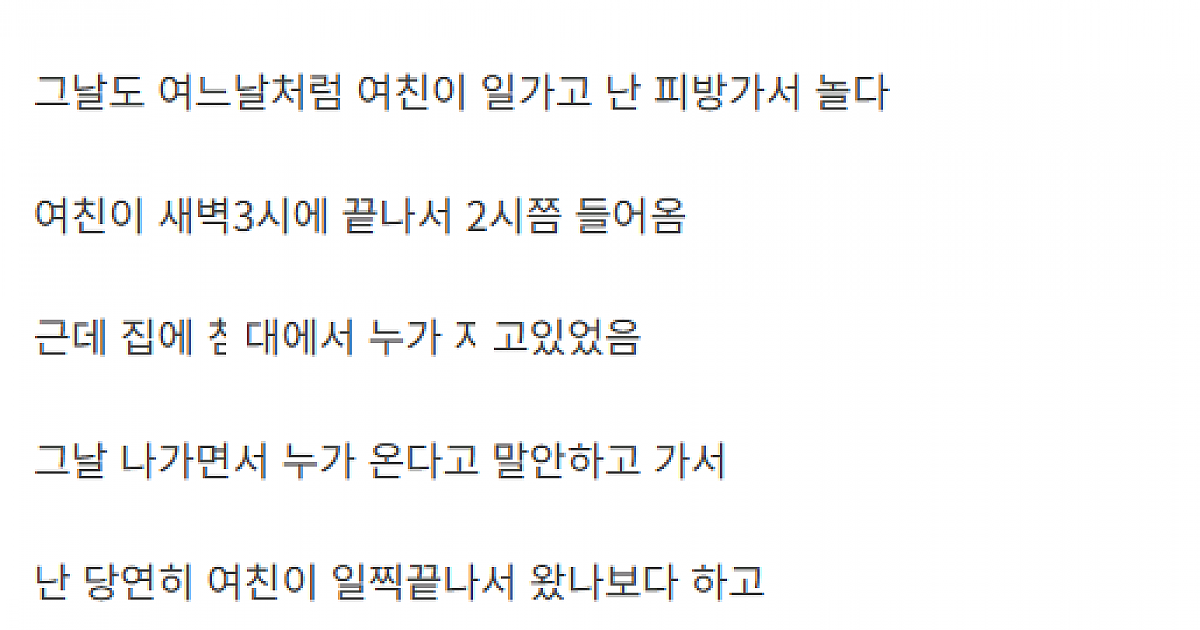 여친집에 놀러온 여친 아는 지인 ㅂㅈ에 ㅈㅈ ㄲ은 이야기