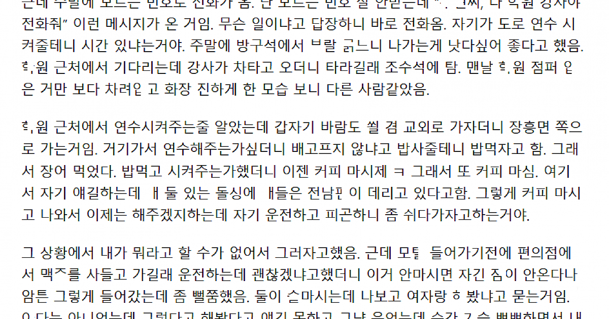 운전ㅎ원 돌씽강사한테 ㅈㅈ ㅃ리다가 ㄲ려서 한 만행