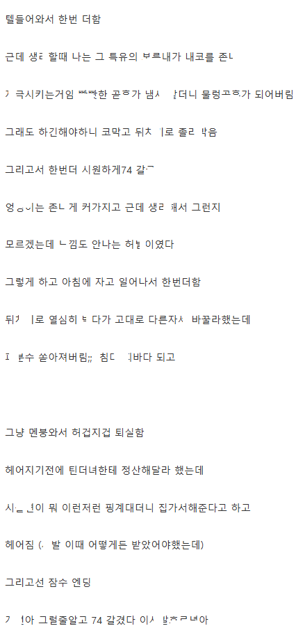 술값 튀튀한 여자 ㄲ셔서 노ㅋ ㅈ싸한 썰