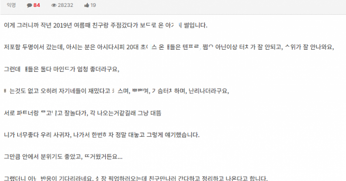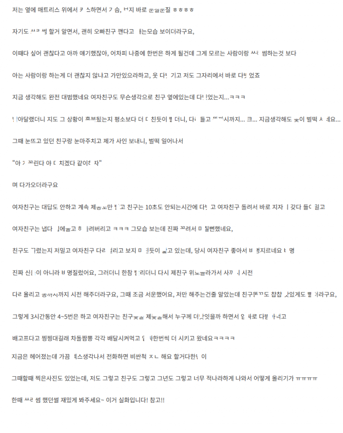 업ㅅ녀 여친 ㄲ셔서 친구랑 ㅆㄹ썸한 썰