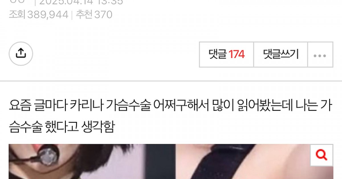 카리나가 너무 부러웠던 방구석 여자가 가슴 수술이라고 주장한 이유