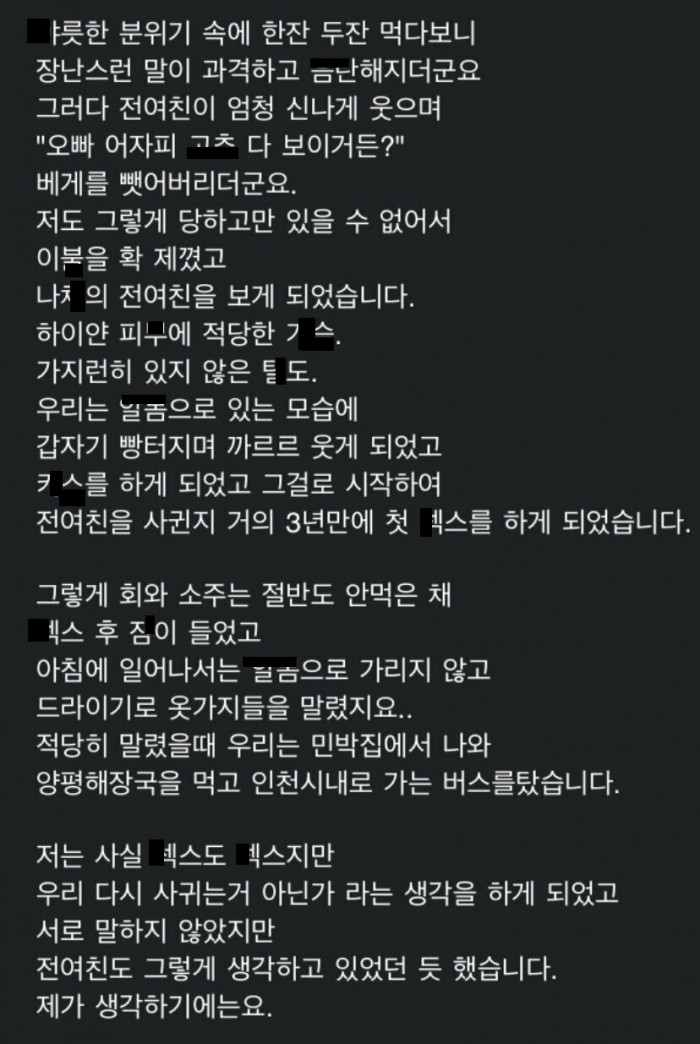 헤어졌던 전여친 보자해서 수년만에 다시 보자마자 ㅅㅅ하고 만날때마다 ㅅㅅ했었는데..