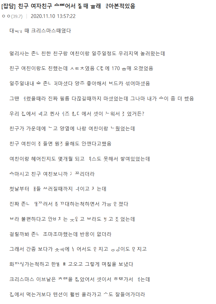 셋이 놀다가 친구 몰ㄹ 친구 여친 자ㄱ있을때 ㅂ아본 썰