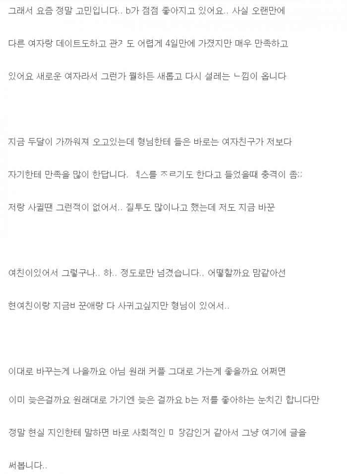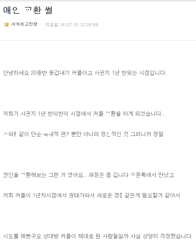 서로의 애ㅇ을 ㄱ환해서 만나본 남자