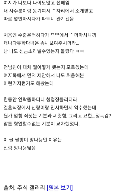 회사 ㅅㅅ파ㅌ너의 결혼식에 간적 있는데..