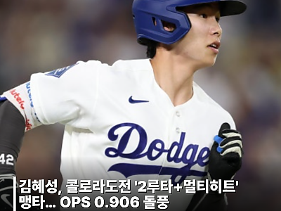 김혜성, 콜로라도전 '2루타+멀티히트' 맹타… OPS 0.906 돌풍