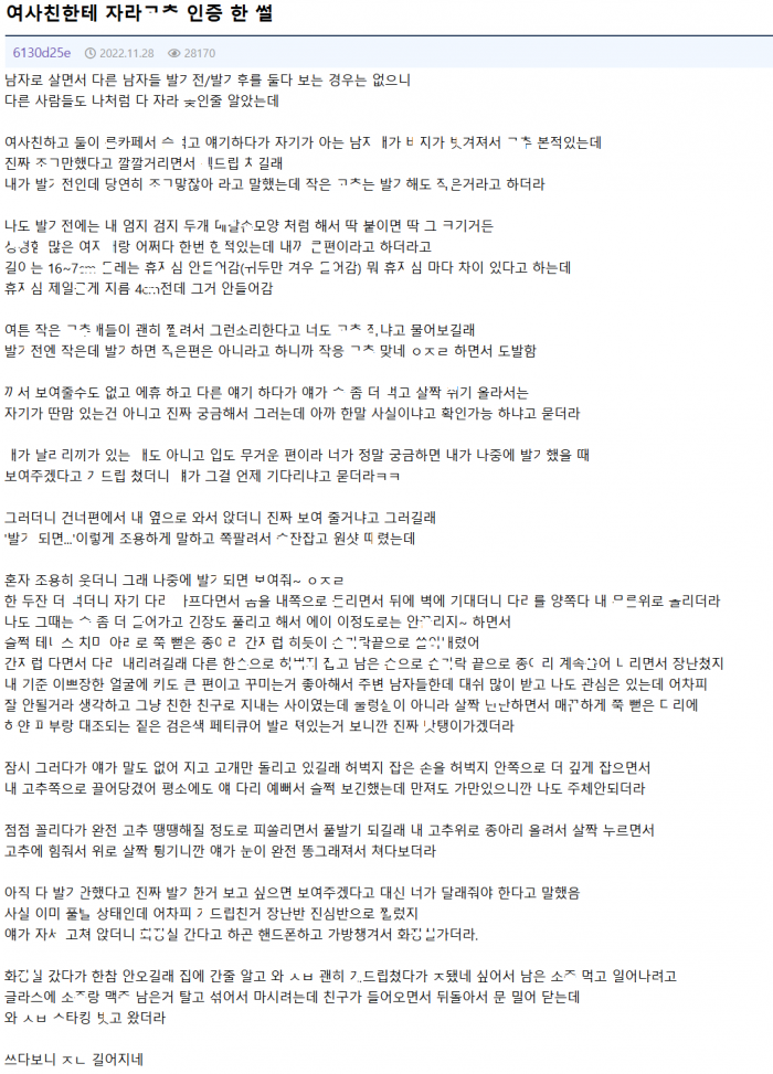 여사친한테 자라ㄱㅊ 인증한 썰