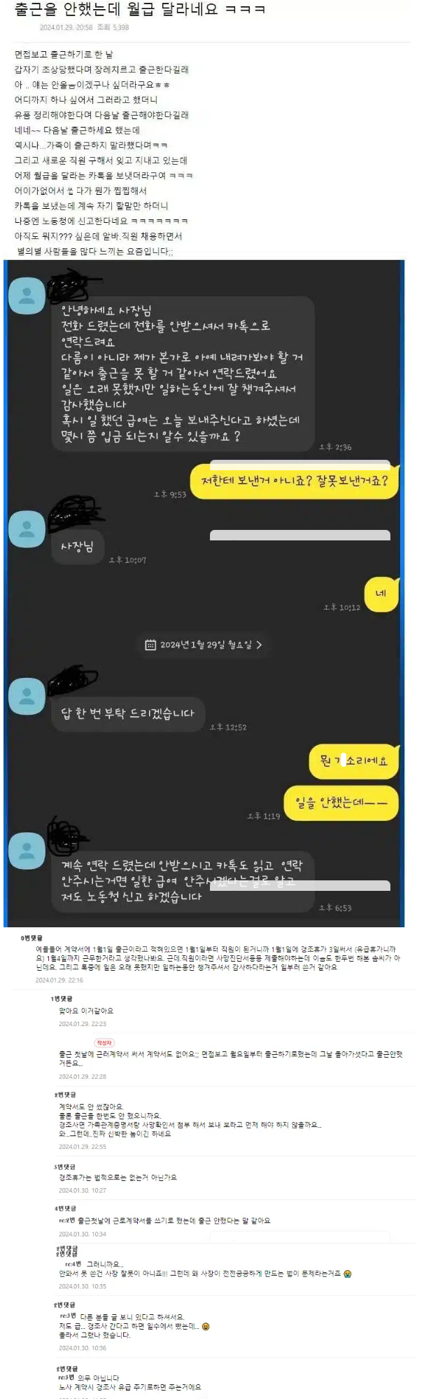 하루도 출근을 안 했는데 월급 달라고 하는 인간