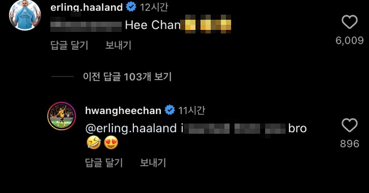 황희찬의 SNS 업로드에 충격받은 홀란드가 남긴 댓글