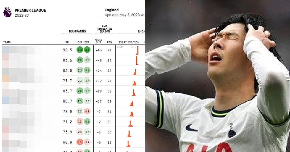 "어쩌다가 이렇게 됐나..." 유럽 대항전 꿈도 못 꾸는 토트넘, EPL 예측 순위