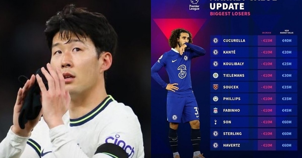 '부진' 손흥민, 몸값 1000만 유로 하락...'EPL 25위+세계 52위'
