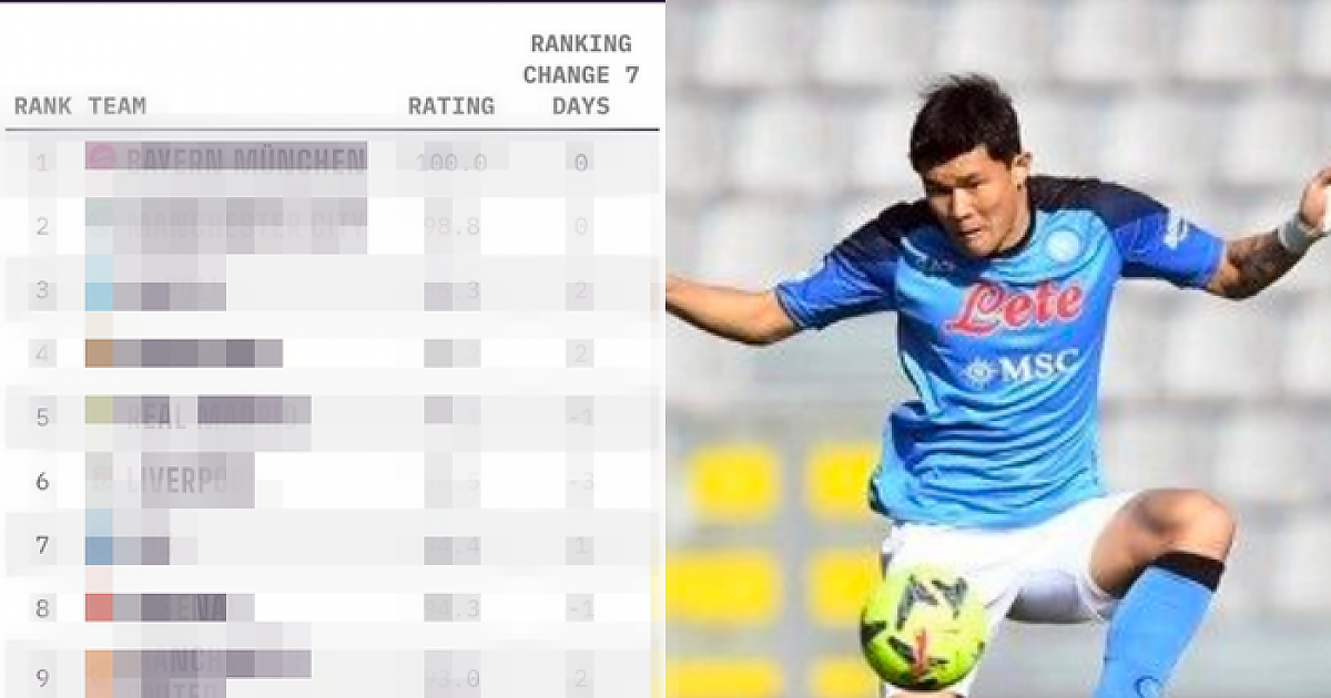 13500개 중 OO위, 김민재의 나폴리 전세계 클럽 순위 공개