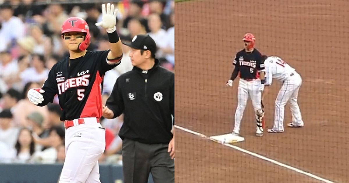 아뿔싸! KIA 김도영, 3루타 치고 세리머니 중 발 떨어져 태그 아웃