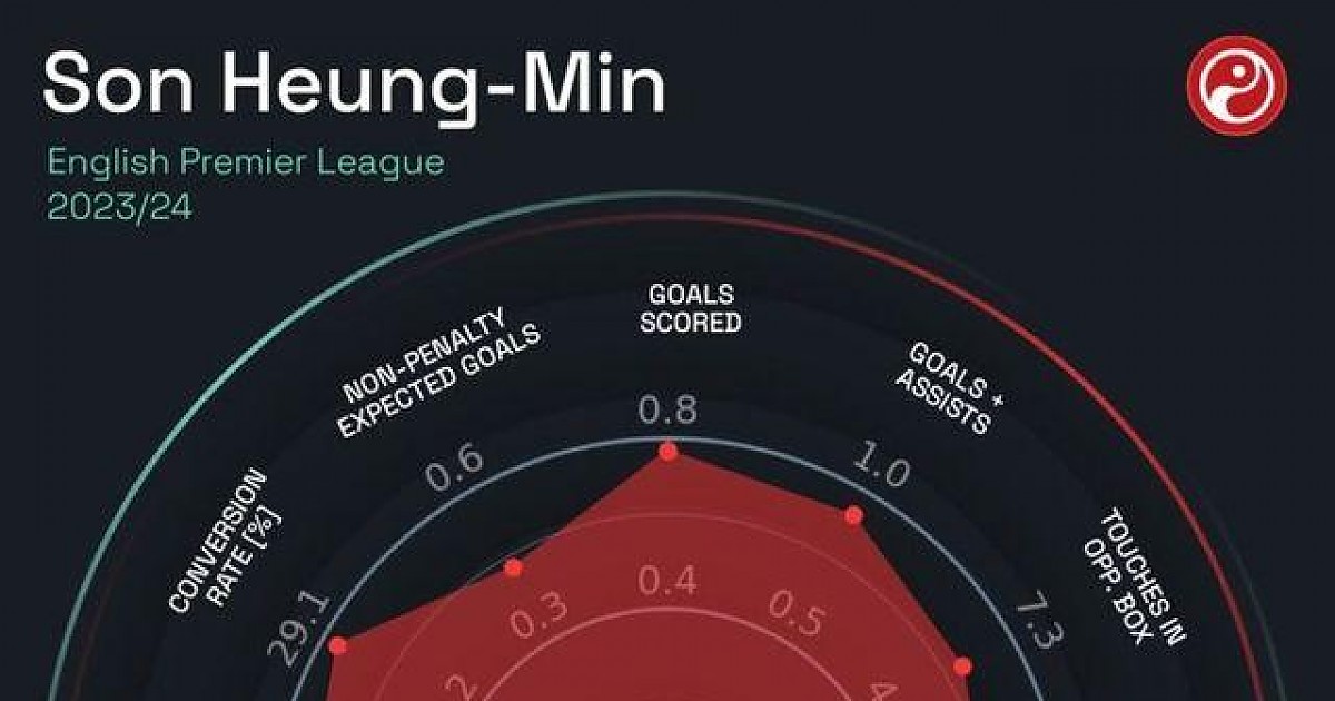 역대급 ‘육각형’ 손흥민...‘PL 최강 스트라이커 1위’ 홀란드-누녜스 동률